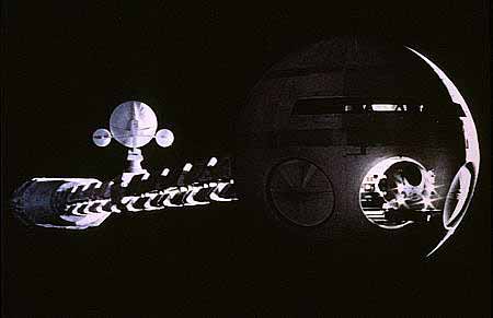 Kubrick s'appuie donc avant tout sur des bases scientifiques solides, avec le recours d'ingénieurs de la NASA, il crédibilise les moindres détails des voyages spatiaux. Les maquettes de Douglas Trumbull ont un coté réaliste et leur ballet sur les valses de Strauss sont une merveilleuse féerie visuelle.