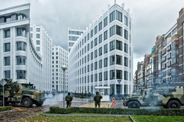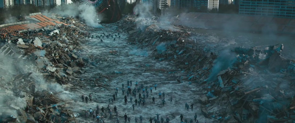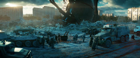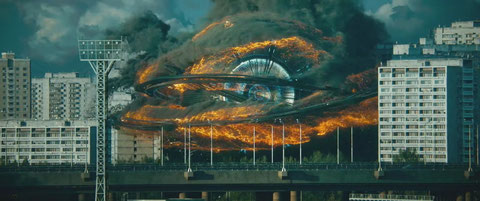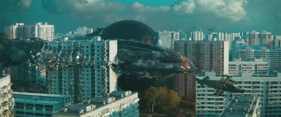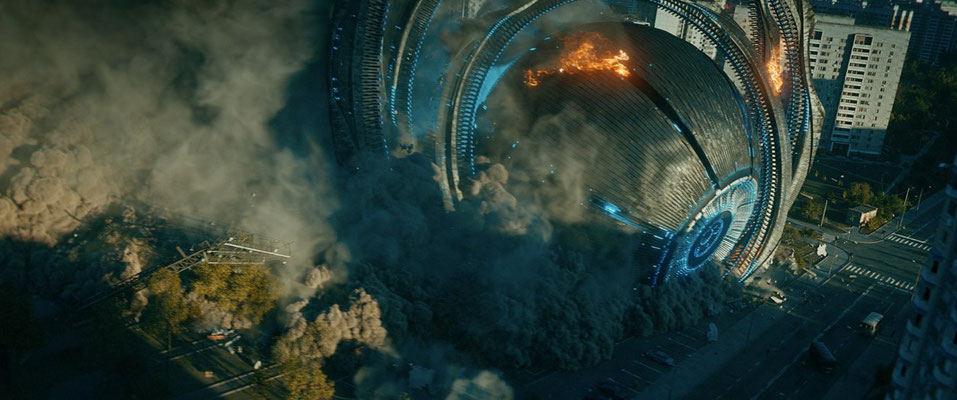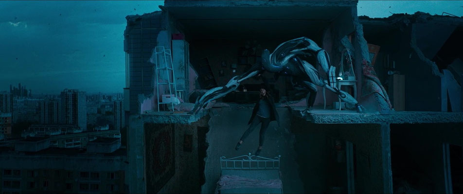 Pour la séquence de crash du vaisseau dans le quartier de Chertanovo (Moscou), le studio a utilisé des générateurs procéduraux de bâtiments, routes, voitures, arbres, etc., afin de construire un décor urbain entièrement CG ou en extension CG.
