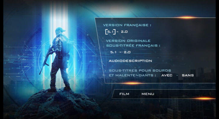 Côté audio, la version française est disponible en 5.1 et en 2.0, la version originale anglaise également disponible en 5.1 et en 2.0. audiodescription, et avec sous-titres optionnels.