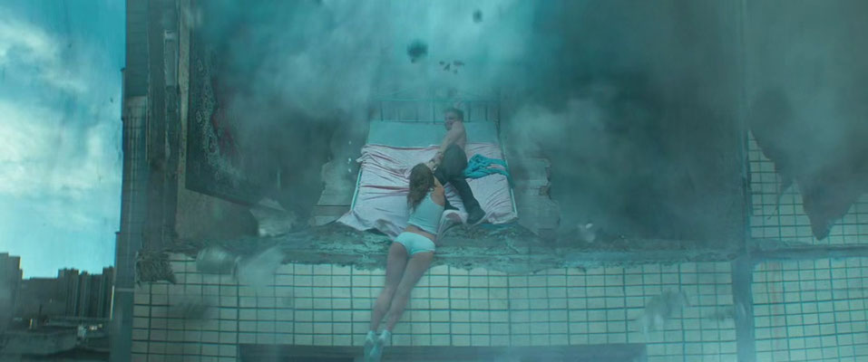 Pour la séquence de crash qui était l’une des plus complexes : une simulation RBD (rigid body dynamics) simulant le mouvement et les collisions des objets comme s'il s'agissait d'objets durs et solides, a été utilisée pour la destruction des bâtiments.