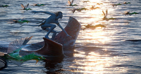 Interprètes : Zoe Saldana (Neytiri), Kate Winslet (Ronal), Sigourney Weaver (Dr. Grace Augustine), Sam Worthington (Jake Sully), David Thewlis (Peylak), Jemaine Clement (Dr. Garvin), Giovanni Ribisi (Selfridge), Oona Chaplin (Varang), Edie Falco (General Ardmore), Cliff Curtis (Tonowari), Stephen Lang (Miles Quaritch), Bailey Bass (Tsireya), Joel David Moore (Norm), Matt Gerald (Recom Wainfleet), Jack Champion (Spider), Britain Dalton (Lo'ak), Trinity Jo-Li Bliss (Tuk), Jamie Flatters (Neteyam), Keston John (Tarsem), Filip Geljo (Aonung), Duane Evans Jr. (Rotxo), Jeremy Irwin (Neteyam jerunr), Jake McLean (Na'vi), Devereau Chumrau (Troupe), Stacey King (Trooper militaire)...