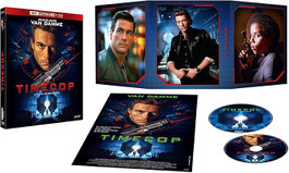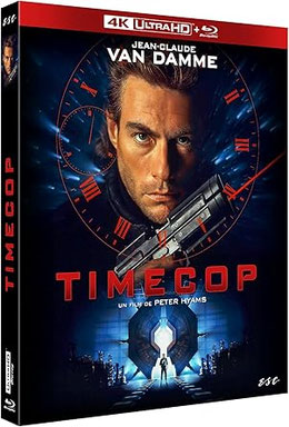 - 4K UHD en édition Collector limitée à 1500 exemplaires ESC VHS-BOX - 4K Ultra HD + Blu-ray + DVD + Goodies (visuel n°1 - Affiche du film) contenant 3 disques : le 4K Ultra HD du film, le Blu-ray du film, le DVD du film, en suppléments : l’affiche du film, le magazine K.O. Mag édition spéciale Timecop, 5 photos du films, 5 photos d’exploitation et le patch TEC!-