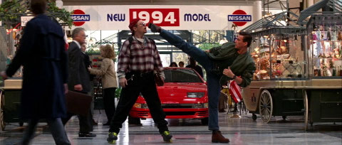 Plusieurs publicités assumées se cachent dans le film, on voit notamment une bannière dans la galerie marchande vantant le nouveau modèle Nissan de 1994. Même la montre-bracelet futuriste de Max est un modèle Casio DW-400, sorti à l'époque.
