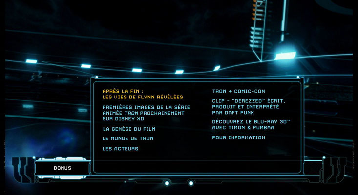 Nous avons ensuite le documentaire "Making of Tron:Legacy" (2010), ici découpé en 3 Chapitres :