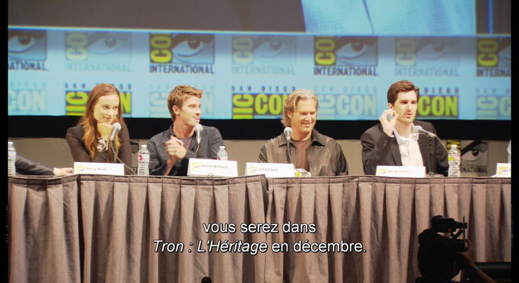 - 😊La genèse du film (10'20") : Le doc fait le lien entre Tron et Tron : L'Héritage, montre l'importance du Comic Con montre l'intégralité de la magnifique séquence de présentation qui a été visualisée lors de la manifestation -avec les réactions de la salle.